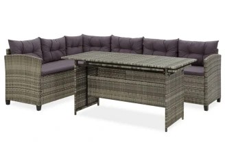 Set mobilier de grădină cu perne, 2 piese, gri, poliratan